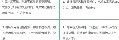高速旋轉(zhuǎn)霧化器是目前工業(yè)生產(chǎn)中使用廣泛的噴霧及干燥制粉設(shè)備之一,廣泛應(yīng)用于化工、制藥、食品、環(huán)保等諸多行業(yè)。目前國內(nèi)需求的大型高速旋轉(zhuǎn)霧化器產(chǎn)品主要依靠從國外進(jìn)口,其價格高、售后服務(wù)不到位等問題給國內(nèi)企業(yè)帶來了巨大的困擾。我司經(jīng)過多年的研發(fā)積累,成功開發(fā)出具有自主知識產(chǎn)權(quán)的高速旋轉(zhuǎn)霧化器,打破了國外霧化器產(chǎn)品壟斷國內(nèi)市場的局面。